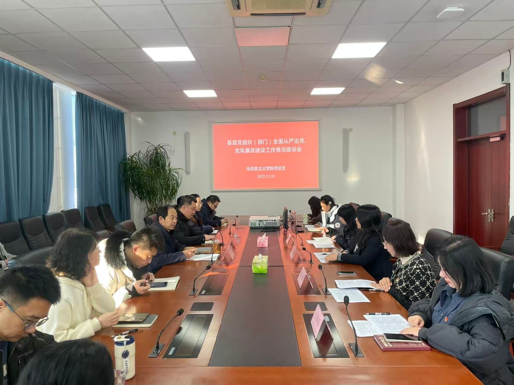为深入贯彻落实学校党委关于全面从严治党的决策部署,掌握基层党组织落实全面从严治党主体责任、推进党风廉政建设的工作成效及存在问题,推动管党治党责任层层压实、政治生态持续向好,12月31日,党委书记任冰带队赴马克思主义学院开展工作专题调研。党委组织部副部长吴哲陪同调研。座谈会上,马克思主义学院领导班子成员、党支部书记、教研室主任及教师代表结合学院实际,围绕调研主题进行了专题汇报。学院重点介绍了本年度全面从严治党主体责任落实情况,...