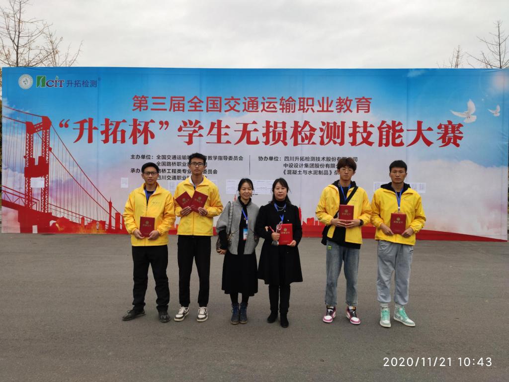 我校道桥系学生在第三届全国交通运输职业教育“升拓杯”学生无损检测技能大赛中荣获佳绩