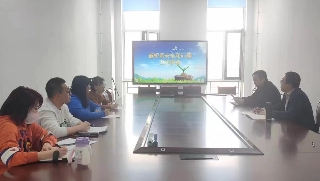3月6日下午,道桥系在五楼会议室召开本学期安全和心理专项工作会议,会议由系党总支副书记李冬松主持,系学工办全体辅导员参加此次会议。会上,安全及心理专项工作辅导员滕相竹认真传达“2023年心理健康教育教研室新学期工作例会”精神,一是组织开展开学第一课心理健康主题教育工作;二是全力做好春季开学学生的特殊群体排查工作;三是对寝室长、心理委员业务能力进行培训;四是做好2023年春季开学学生心理问题排查工作;五是...