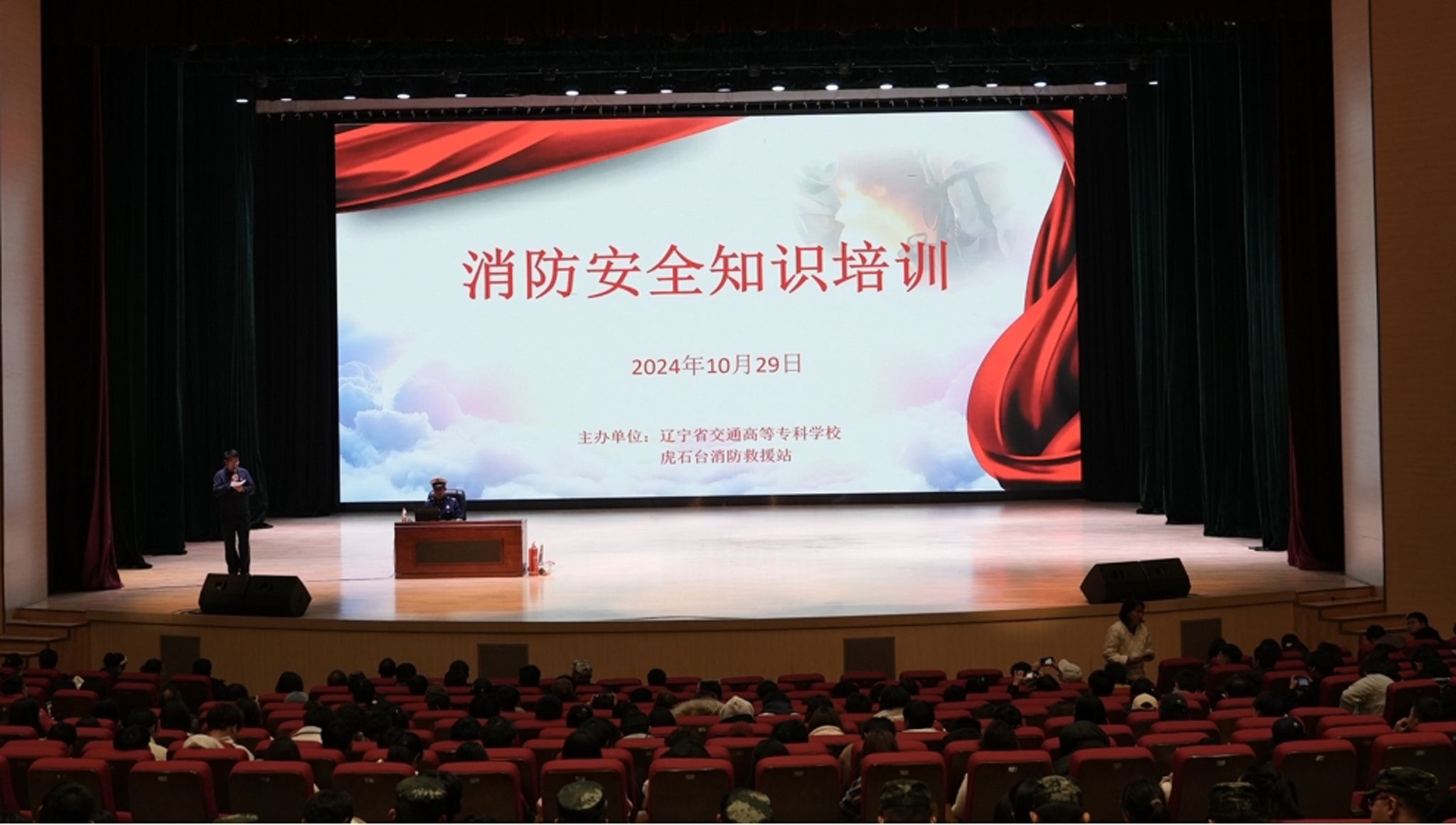 为增强广大师生员工消防安全意识,提高师生防火自救互救能力,掌握基本消防知识和技能,按照我校年度安全教育培训工作计划,2024年10月29日下午安全保卫处邀请沈北新区消防大队消防救援站站长助理孙博为我校师生员工进行了消防安全知识培训。学校各部门安全负责人、全体辅导员、各公寓楼长、楼层长、瀚威公司和后勤服务中心各部门负责人及部分学生代表,共计800余人参加培训。消防安全知识培训孙博警官分别从火灾的定义、分类及发展过程为大家介绍了火灾的特点,...