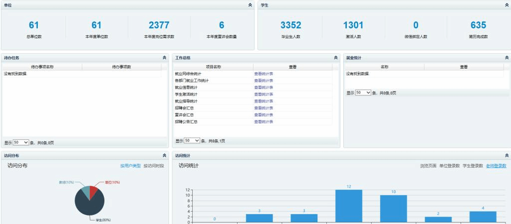 为贯彻落实国家、省关于应对新冠肺炎疫情做好2020届毕业生就业创业工作的部署要求,扎实做好2020届毕业生就业工作,我校自2020年2月起暂停所有线下招聘活动,全面启动线上招聘活动。3月23日至27日,我校举办了为期5天的首场网络招聘会。此次招聘会共有参会企业60家,提供就业岗位2311个。招聘会期间参与学生7150人次,用人单位共收到简历851份,593人参加视频面试,100余人达成初步就业意向。截至3月27日,我校就业信息网访问量达到9万余人次。网络招聘会期间组织空中宣讲会6场,参与学生786人次,达成就业意向50余人。