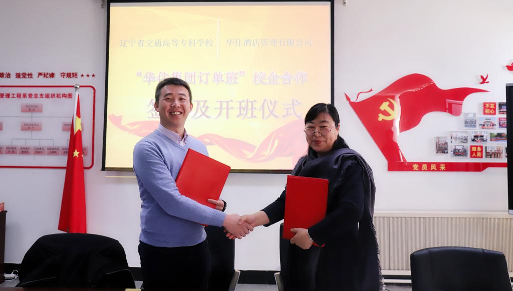 为进一步提升我校产教融合、校企合作水平,切实对标落实好《国家职业教育改革实施方案》和校党委的部署,管理系与全球酒店集团10强华住酒店集团积极沟通, 2020年12月18日举行了“华住酒店集团订单班(店长班)”协议签约及开班仪式。华住集团人力资源部招聘总监吕笑雨、校企合作组经理陈雯、刘亭序、端正,我校校企合作办公室主任段兴盛、管理系主任仪玉莉、副主任刘莉莉、孙莹、副书记张宁、专业主任崔剑生和旅游管理专业教师出席了仪式,订单班35名学生参加。
