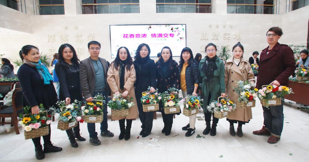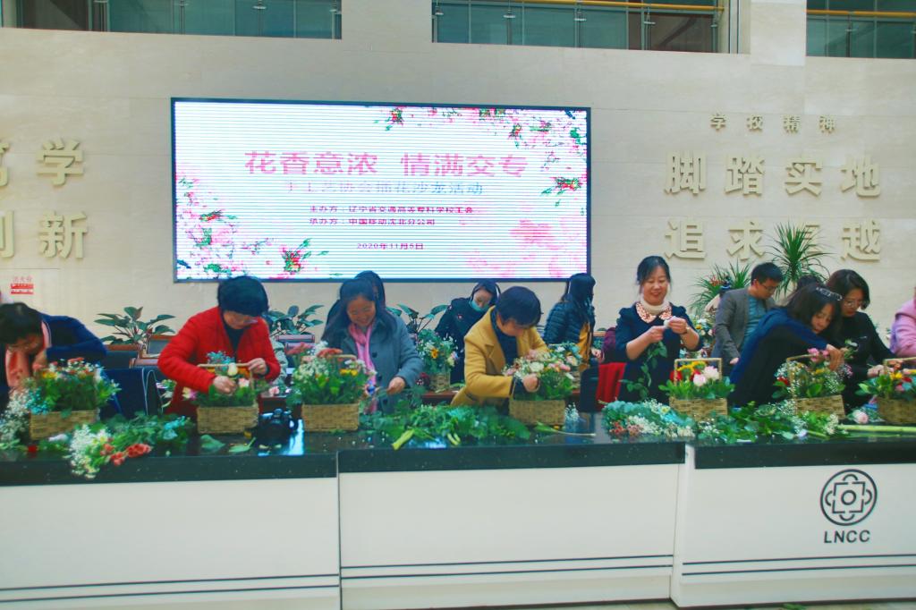 11月5日,为丰富教职工业余文化生活,激发工作活力和凝聚力,提升教职工欣赏美、创造美的能力,由我校工会和中国移动沈北分公司联合主办,手工艺协会承办“花香意浓·情满交专“插花沙龙活动在学生素质教育中心一楼大厅成功举办。本次活动共有90余名教职工参加。
