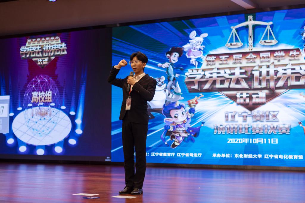 2020年10月11日,第五届全国学生“学宪法 讲宪法”活动辽宁赛区演讲比赛总决赛在东北财经大学举行。来自全省14个市和36所高校的78名大中小学生分为小学、初中、高中和高校4个组别,通过将作品上传辽宁省教育资源公共服务平台进行网络初评、现场主题演讲和命题演讲的方式展开激烈角逐。