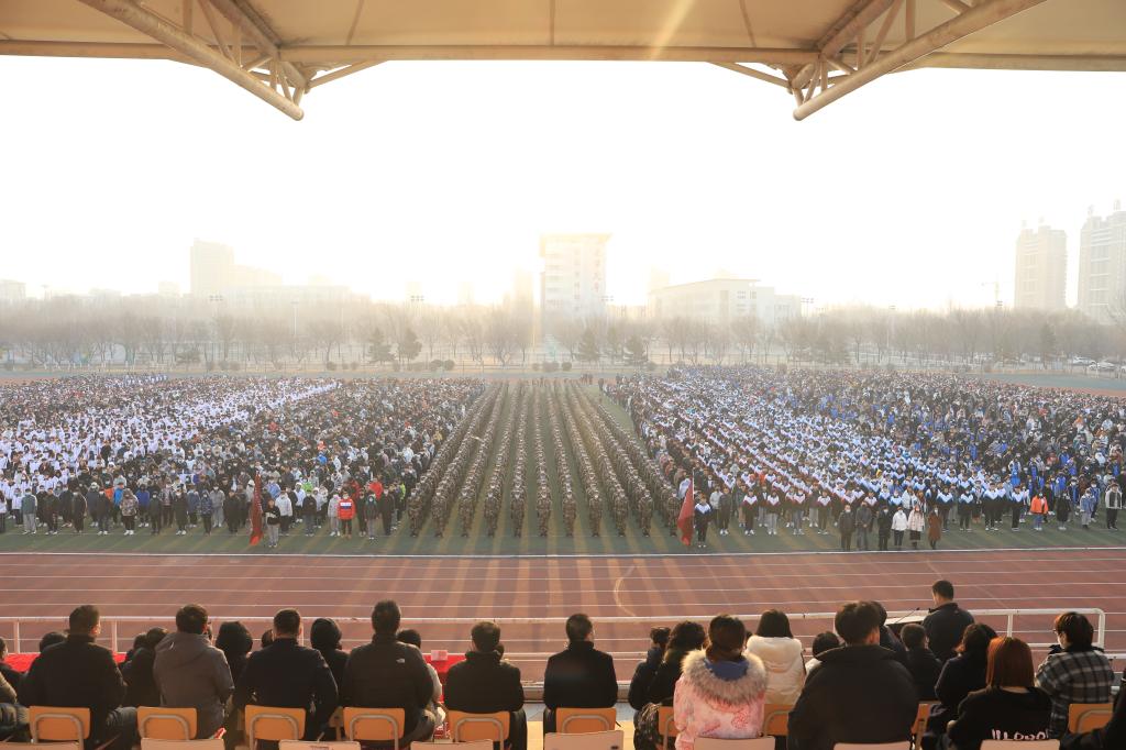 阳春三月,生机勃发,万物复苏,3月8日清晨,在新学期的第一缕阳光中,我校隆重举行“学党史,做时代新人”春季“开学第一课”。学校全体党委委员和领导班子成员、系(部)领导班子成员、全体中层干部、全体辅导员出席活动仪式。2019、2020级全体在校学生8300余人整齐列队。活动由党委副书记岳贵鑫主持。