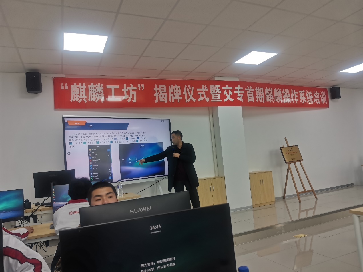 2023年4月4日下午,我校信息工程系在新实训楼5006举行“麒麟工坊”揭牌仪式暨首期信创培训。