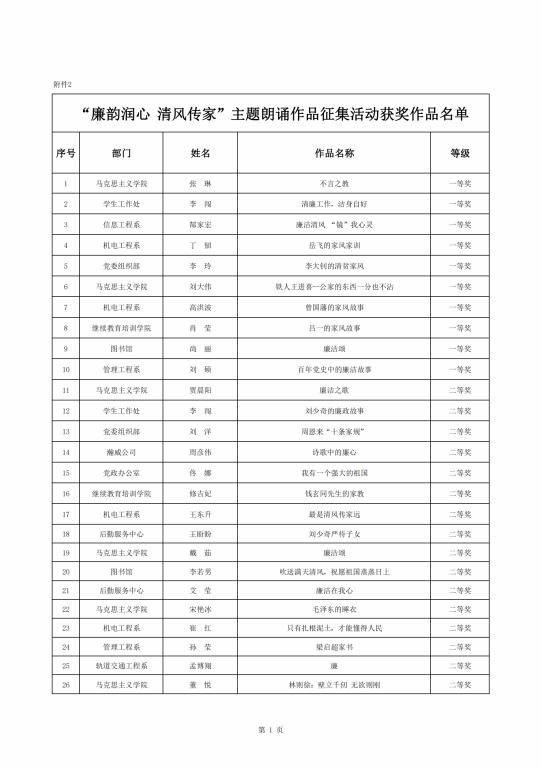 活动获得全校教职工积极响应。活动通知下发以来,各基层党组织、各部门精心组织,全校教职工围绕爱国、诚信、勤政、勤政、敬业等内容,以讲身边模范、颂古今典型事迹的方式讲述廉洁故事,借助文字的力量和声音的魅力,展示了故事背后的深刻内涵,诠释了廉洁文化的深厚底蕴。活动共征集到廉洁短文、廉洁故事等主题朗诵作品百余项。学校纪委组织专家对征集作品进行评比,最终评选出一、二、三等奖作品若干(获奖名单见附件)。