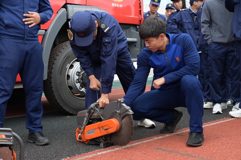 消防战士演示消防救援装备