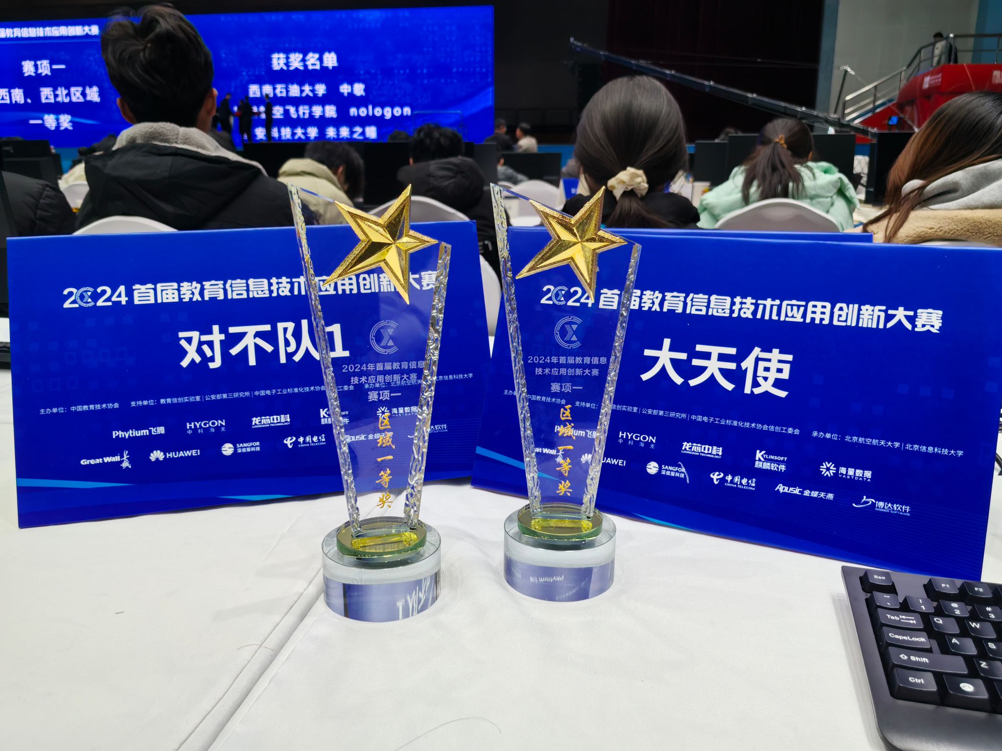 我校信息工程系组建2支代表队参赛。他们分别是:对不队1:王思涵队长、孙可涵、张翔鹏;大天使:武云佳队长、孟博涵、王晟共6名同学,在指导教师刘月的带领下,6名同学通过赛前一系列紧张的训练、搭建比赛环境和操练演习等,在初赛912支参赛队伍、2719名参赛选手中脱颖而出,以优异成绩晋级决赛。经过激烈角逐,2支队伍分别荣获全国二等奖和全国三等奖,并且2支队伍均荣获东北区域一等奖,获得2个区域一等奖的奖杯。