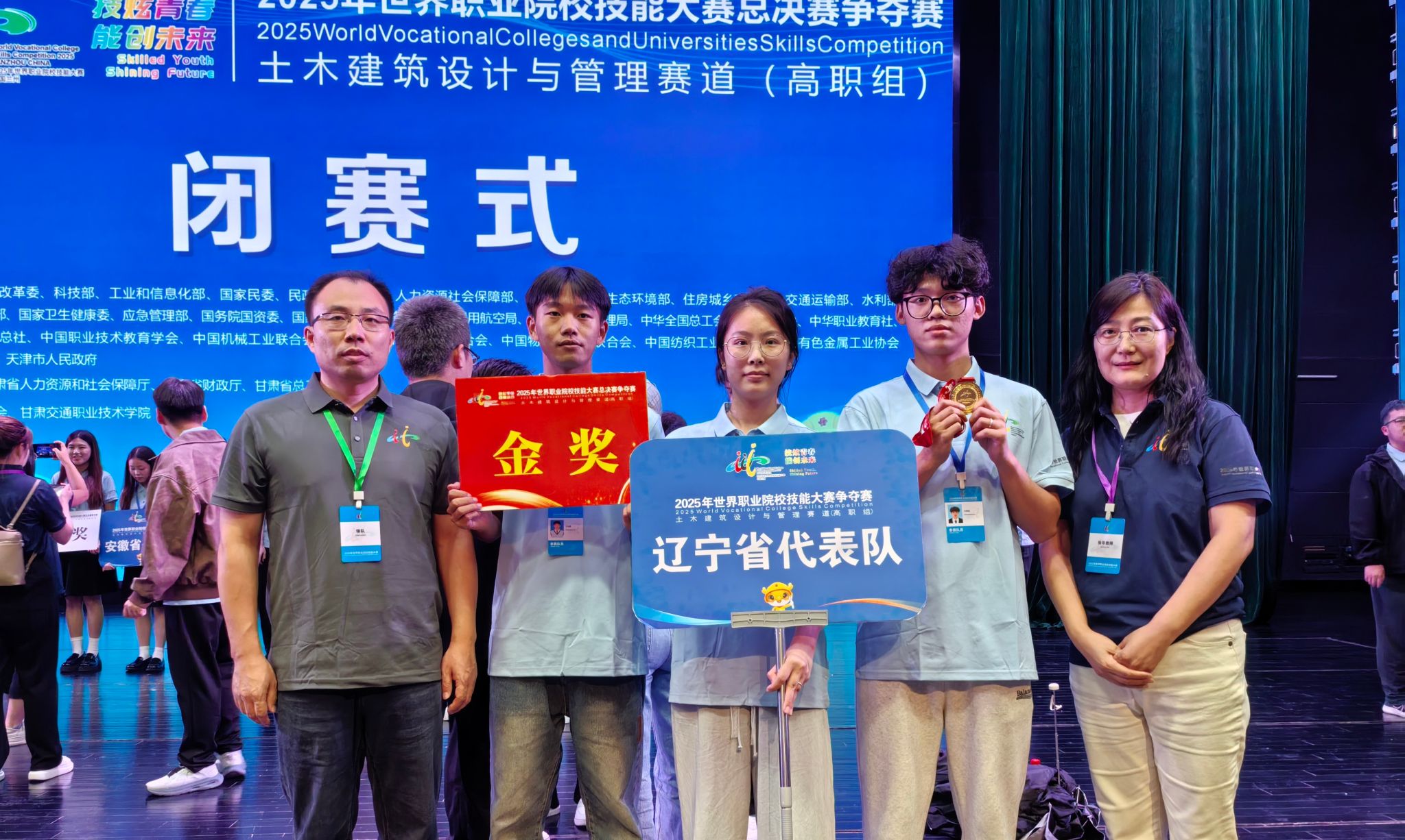 8月26日-29日,2025年世界职业院校技能大赛争夺赛土木建筑设计与管理赛道(高职组)在甘肃交通职业技术学院举办,来自全国各地高职院校的183支代表队参加了比赛。经过激烈比拼,由我校建筑工程系侯献语、王亮两位老师指导的建设工程管理专业2024级学生刘相旭、张雨竹、于吉霖三位同学组成的参赛团队,凭借扎实的专业技能、过硬的职业素养、优异的现场表现,斩获金奖的好成绩。