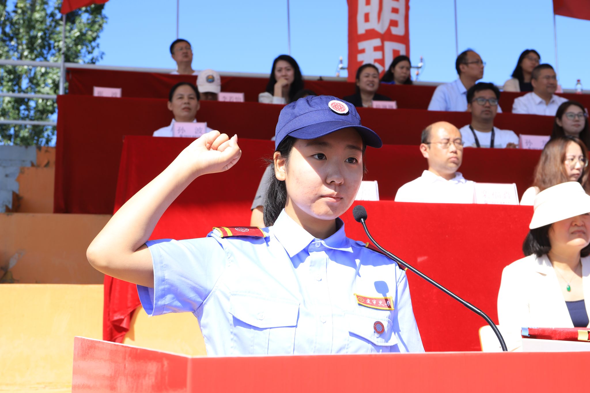 全体新生集体佩戴校徽并庄严宣誓,誓言铿锵,信念如磐,表达了恪守校训、勤学笃行、报效祖国的坚定决心。