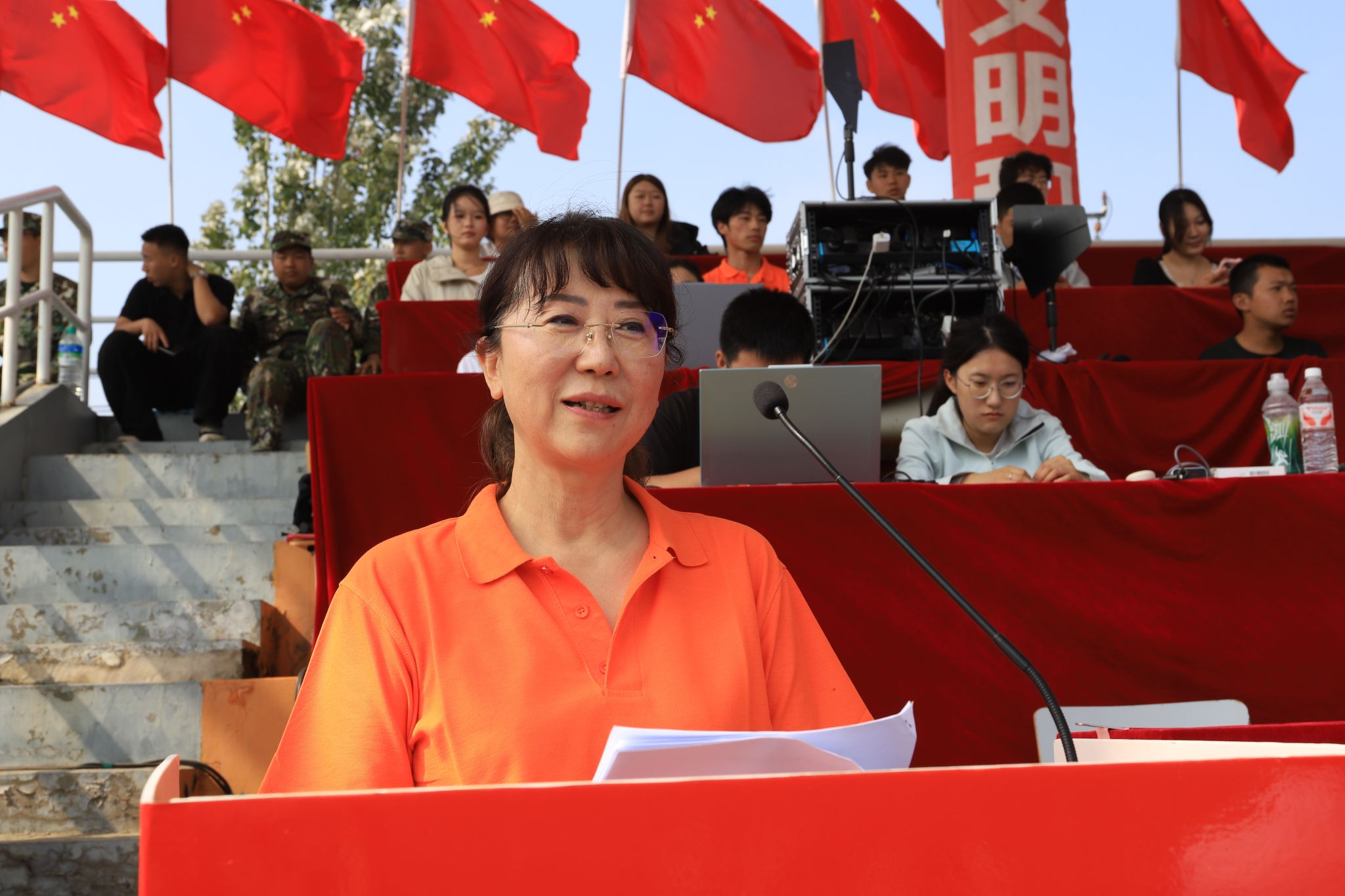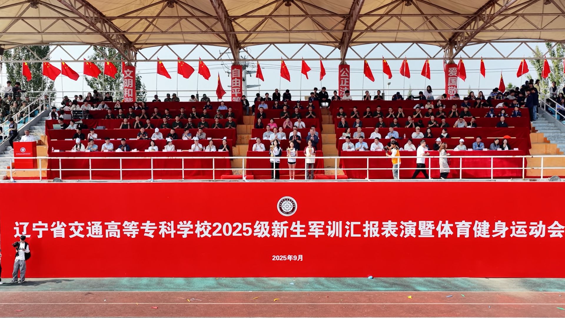 秋风送爽启新程,意气风发绽芳华。在这充满收获与希望的季节里,辽宁省交通高等专科学校新生军训汇报表演暨2025年体育健身运动会在学校体育场隆重举行。由校领导班子成员、各系党总支书记、相关职能部门负责人组成的大会主席团在主席台就座,全校教职工及学生参加大会开幕式。