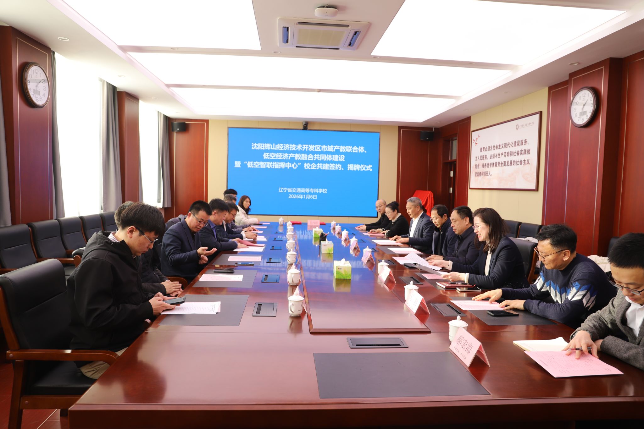 为深入贯彻落实国家关于加快发展新质生产力与低空经济的战略部署,深化产教融合、推进校企协同育人,1月6日下午,我校与辽宁众飞科技有限公司校企共建“低空智联指挥中心”签约仪式在办公楼301会议室举行。
