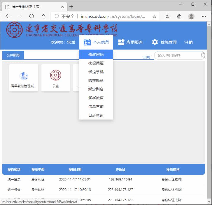 登录后点击“个人信息”→“修改密码”