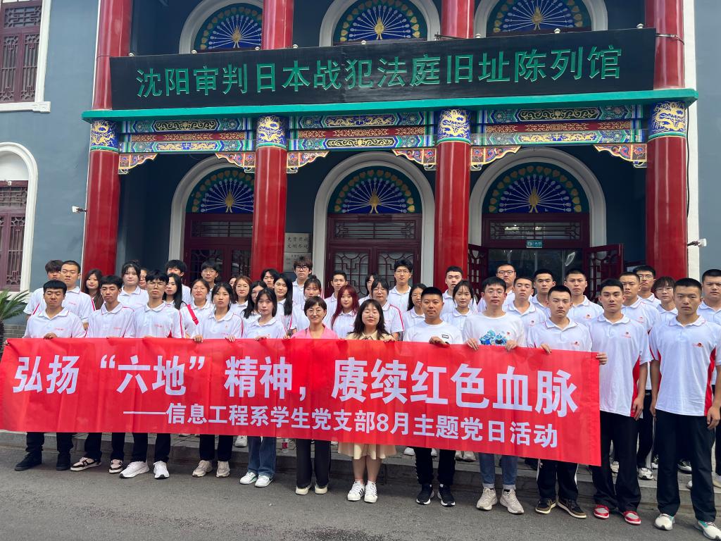 为深入贯彻落实习近平总书记在辽宁考察时“要讲好党的故事、革命的故事、英雄的故事,把红色基因传承下去,确保红色江山后继有人、代代相传”的重要指示精神,结合学习贯彻习近平新时代中国特色社会主义思想主题教育中“学思想、强党性、重实践、建新功”总要求,引导学生领会“六地”精神内涵,感悟真理力量,筑牢信仰之基。8月30日,信息工程系学生党支部前往沈阳审判日本战犯法庭旧址陈列馆进行参观学习。