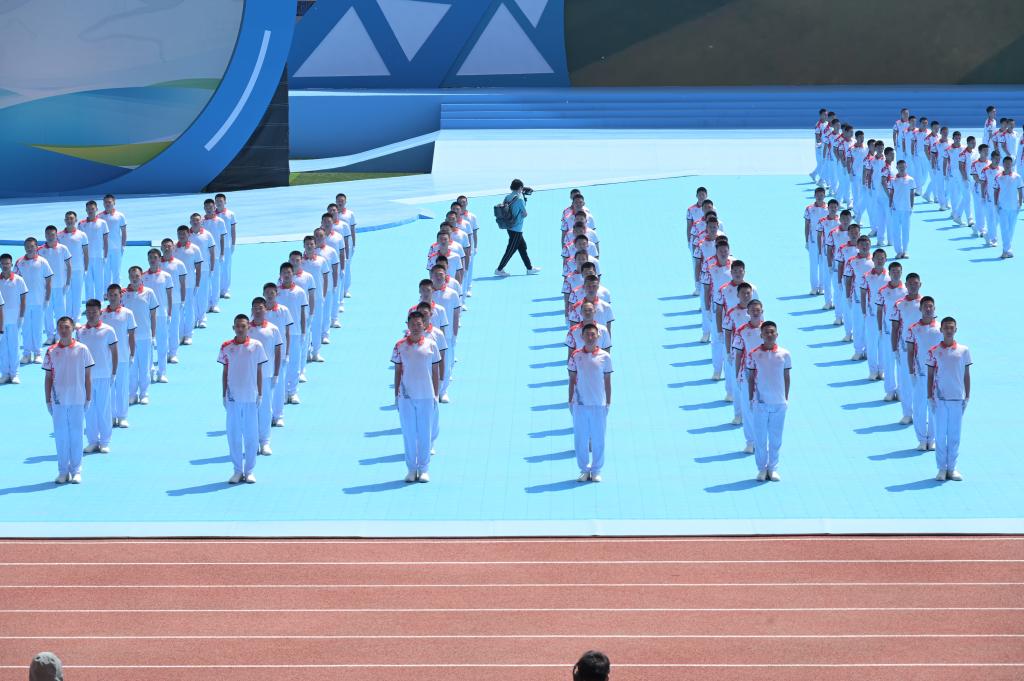 全省共有六所高校参与开幕式演出,我校400余名警士学员受邀全过程参加大赛开幕式表演,多个展演环节中担任中坚力量,展演节目覆盖每个篇章,是参与节目最多的高校。共有10人参加撞球、搏击操、板羽球、手抛球系列序章表演。40人参与了第二篇章彩带龙表演。分别有230人参与了第三篇章的广播操表演和130人参与了第三篇章的氛围营造队形变换表演。90人参与了第四篇章彩旗表演。