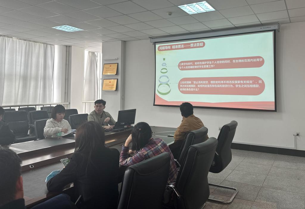 在第八个全民国家安全教育日到来之际,为全面践行总体国家安全观,党政办公室(法制办公室)管奇、陈香卉老师为辅导员老师代表详细讲解《中华人民共和国国家安全法》教师应知应会法条,强调引导师生树立国家安全意识的重要性。