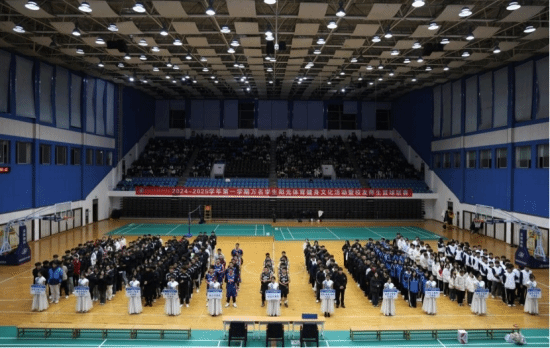 国歌旋律在体育馆内回响,激发了在场每一个人的爱国情怀和集体荣誉感。随后,主持人介绍了来自校友、教师及各系的十一支代表队,并邀请代表上台发言。