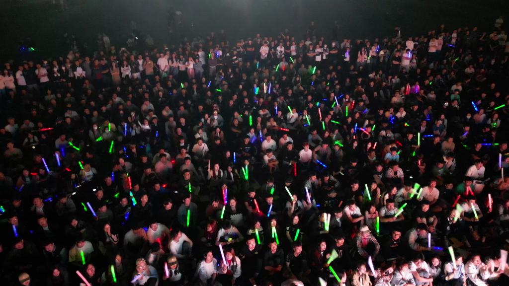 515日晚,千余名师生齐聚田径场观看CBA总决赛G4大战,共同见证辽宁男篮卫冕时刻。