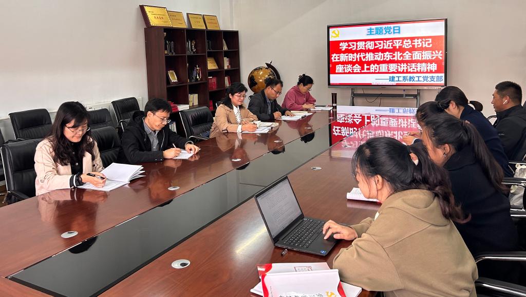 根据校党委组织部的统一要求和建筑工程系党总支的统一部署,建筑工程系教工党支部于10月25日中午在系会议室召开党支部党员大会,组织开展“学习贯彻习近平总书记在新时代推动东北全面振兴座谈会上的重要讲话精神”主题党日。党支部全体党员和积极分子参加了集体学习,党支部书记王亮同志主持。