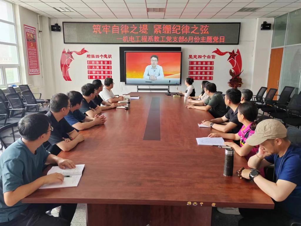 根据学校统一部署,2024年6月12日,机电工程系教工党支部在党员活动室开展“筑牢自律之堤,绷紧纪律之弦”主题党日,会议由吴清洋书记主持,党支部全体党员参加会议。