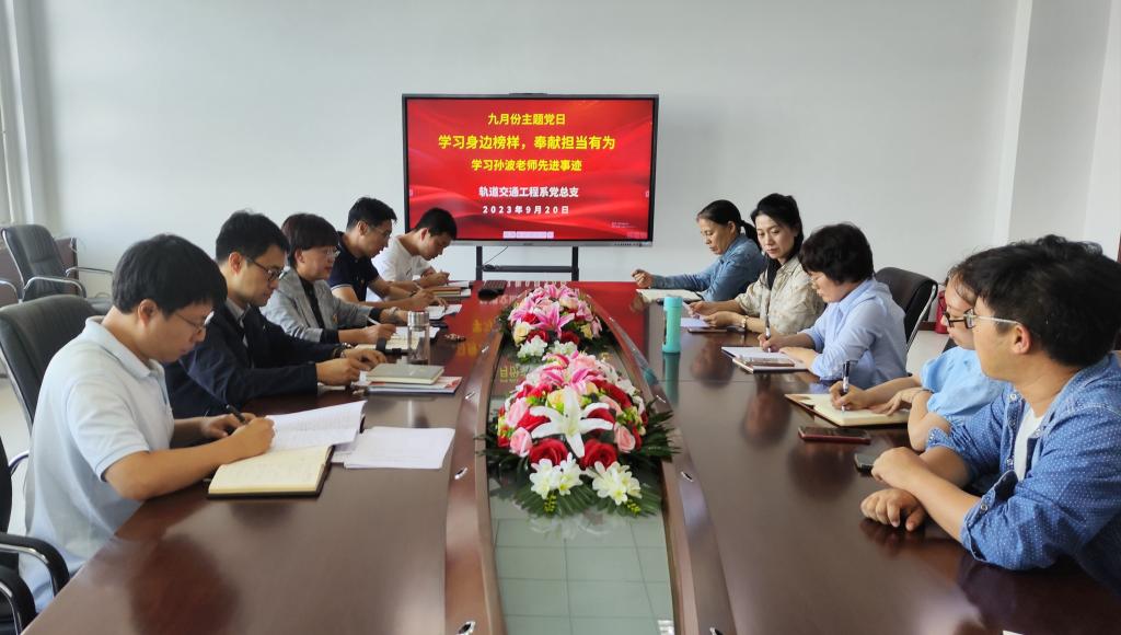 为贯彻落实《辽宁省交通高等专科学校学习贯彻习近平新时代中国特色社会主义思想主题教育实施方案》要求,激发教师团结、奋进、进取的职业精神,夯实教师立德树人育人目标,2023年9月20日下午13:30分,轨道交通工程系党总支在A712会议室开展九月份主题党日活动-“学习身边榜样,奉献担当有为”。本次活动由党总支书记慕威主持,全国巾帼建功标兵、辽宁省优秀教师孙波老师进行经验分享,轨道交通工程系全体教工党员参加。
