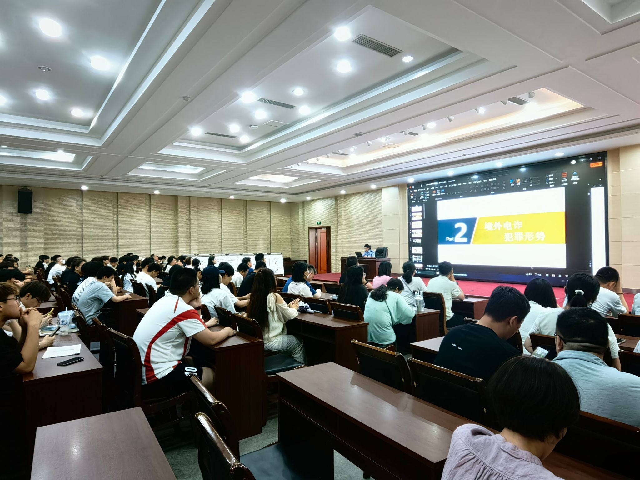 为增强师生的反诈骗意识,提高防范诈骗能力,营造安全和谐的校园环境,6月30日下午,学生工作处、安全保卫处在素质中心101报告厅成功举办了一场别开生面的反诈骗知识讲座。此次讲座特邀沈阳市公安局沈北分局新型犯罪研究中心桑俊警官主讲,学生工作处、安全保卫处负责人及相关人员、各教学系党总支副书记、全体辅导员、学生会主席团成员、2024级学生干部代表等300余人参加讲座