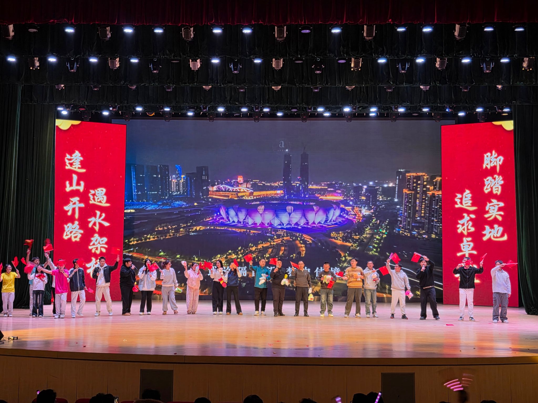 当暮色浸染校园,当星光点亮礼堂为欢迎2025级新生融入公路与铁道工程系大家庭,展现公铁学子昂扬向上的精神风貌,1216,公路与铁道工程系“凝心聚力,奋进华章”主题迎新晚会在学校千人礼堂盛大举行。系党总支书记鲁嘉、党总支副书记王亮系副主任徐义洪全体辅导员2025级全体新生、其他年级学生代表共同见证这场青春盛宴。
