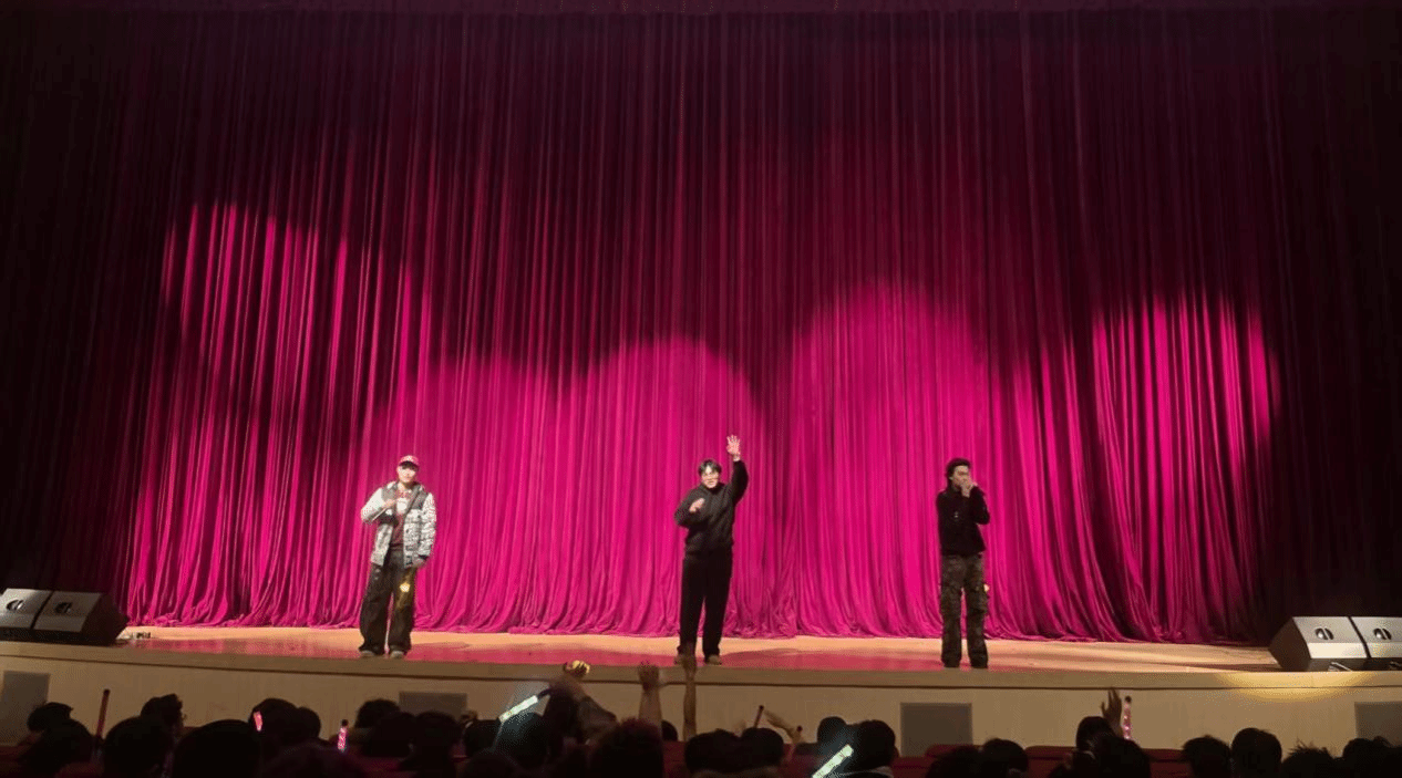 红座椅间坐满观众,有人举手机记录,有人比出剪刀手,年轻的脸庞满是欢喜,欢呼掌声不断。