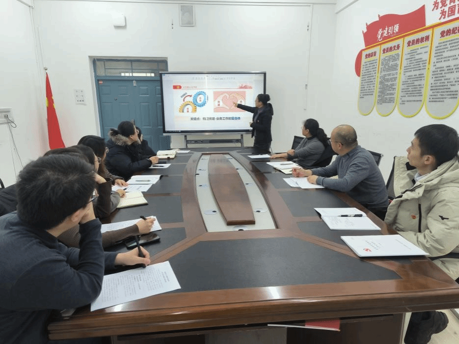 随后,教工党支部书记王春波领学党委组织部下发的《关于党组织联建共建工作的问答》(中央组织部《组工通讯》第25期)文件精神。王春波从党组织联建共建的性质定位、核心目标、基本原则等方面进行梳理,重点解读了开展联建共建的条件要求。她指出,党组织联建共建是整合资源、优势互补、凝聚发展合力的重要途径,结合系部专业特色和发展需求,要精准把握联建共建的方向和重点,为后续开展高质量联建共建工作奠定基础。