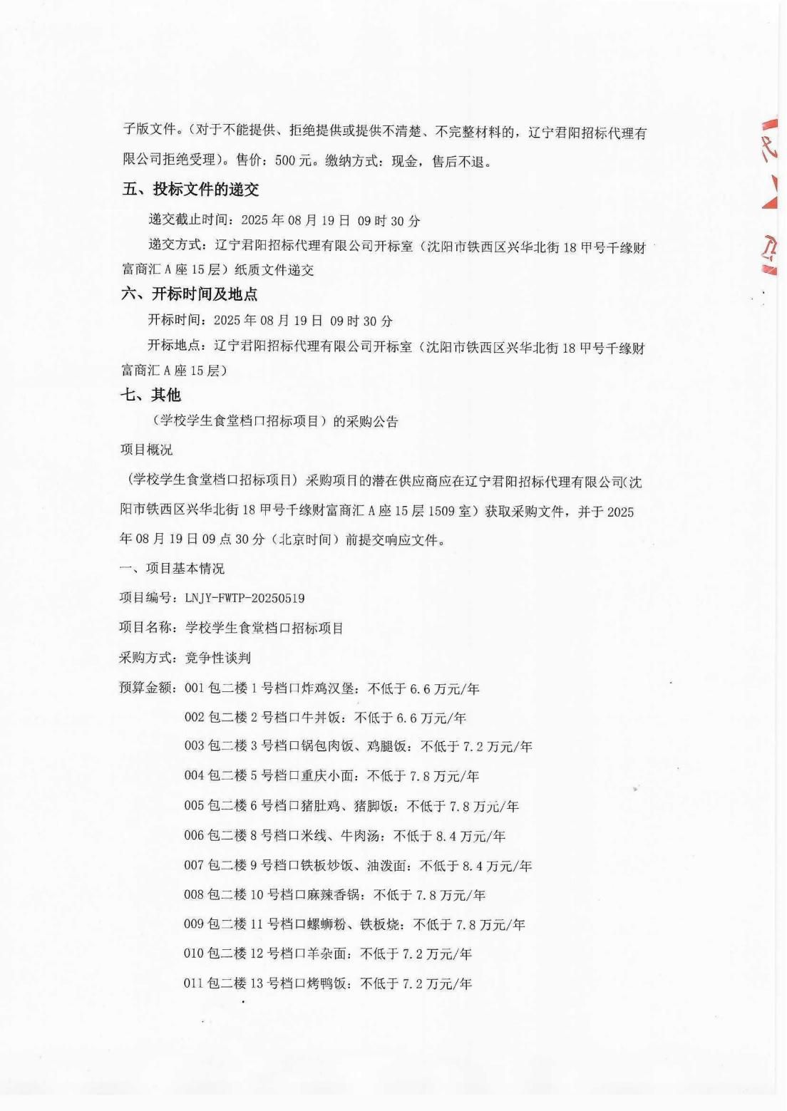 学校学生食堂档口招标项目采购公告(LNCC2025017)