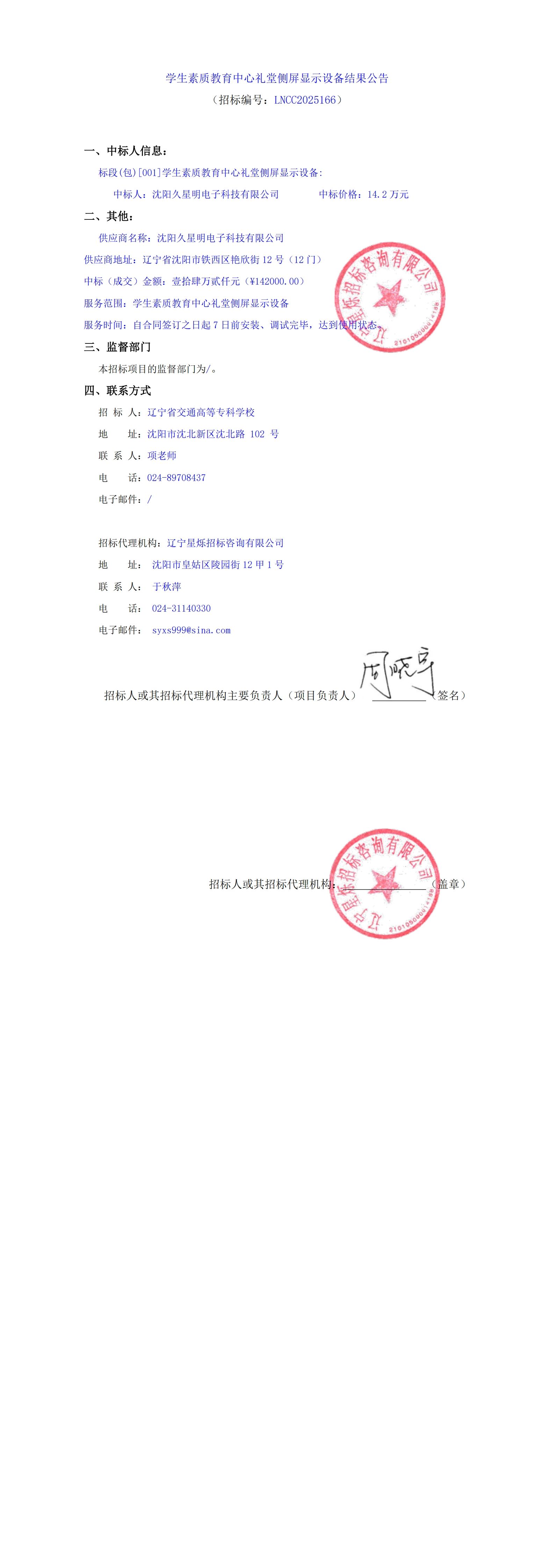 学生素质教育中心礼堂侧屏显示设备结果公告