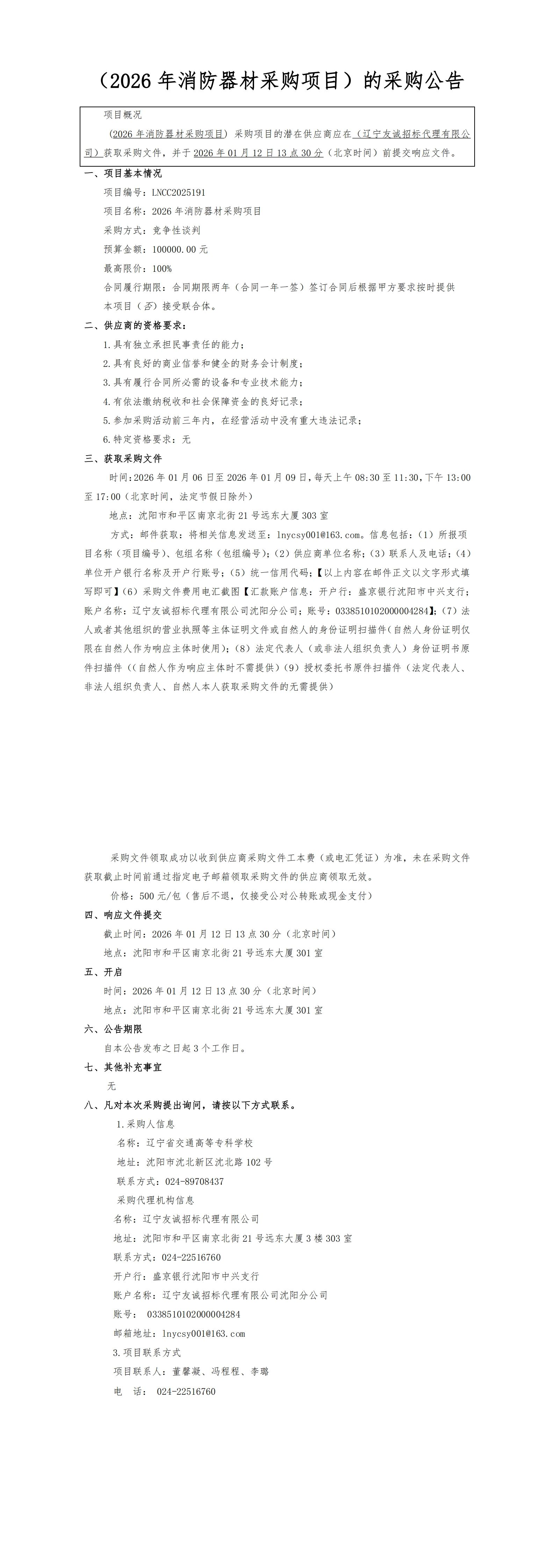 2026年消防器材采购公告(LNCC2025191)