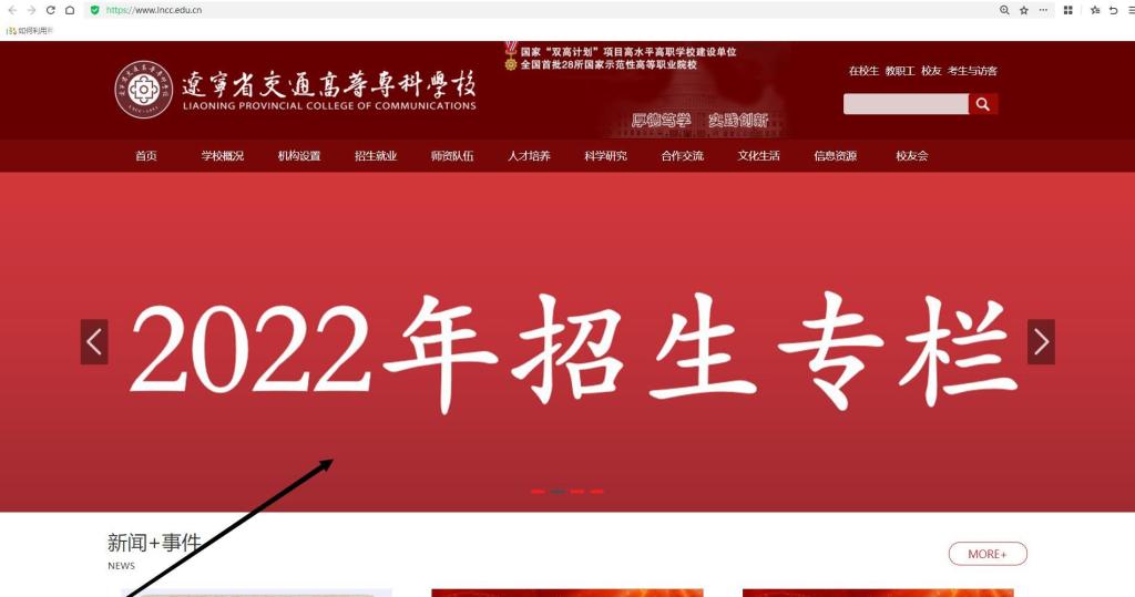 第一步:登录学校官方网站(/),点击图片“2022年招生专栏”进入学校招生网站(或直接登录招生网站:/xsc/)。