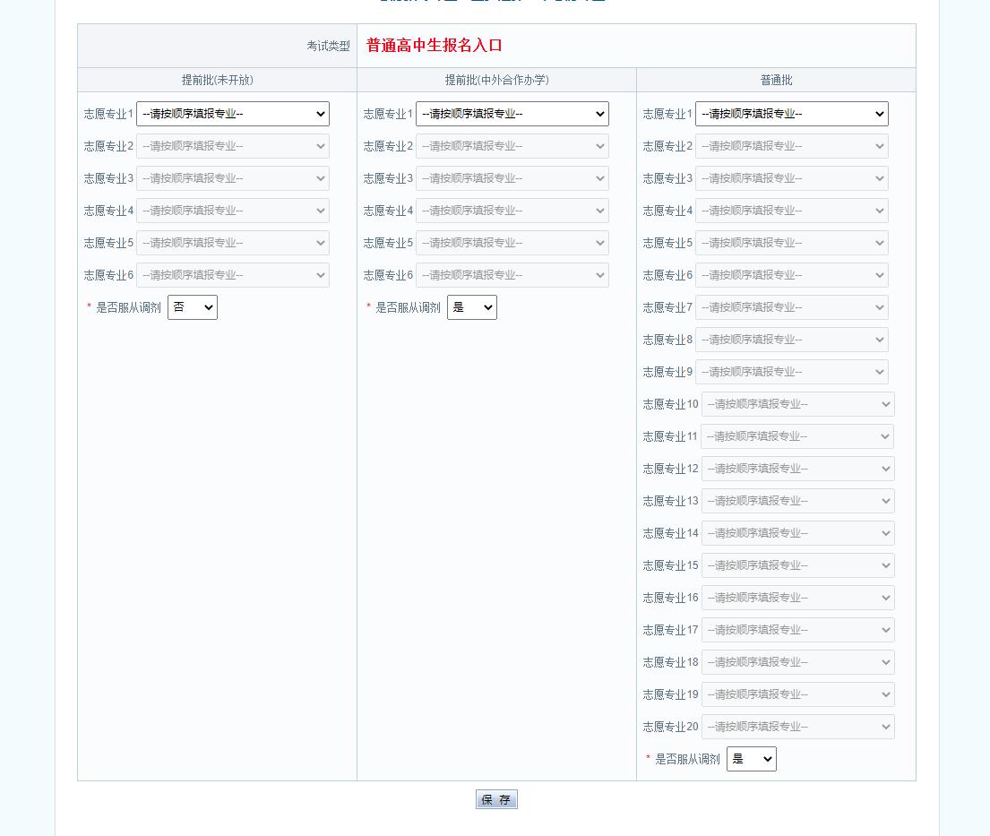 第六步:根据相应的报名端口进行志愿填报(切记完成填报志愿后点击保存按钮)