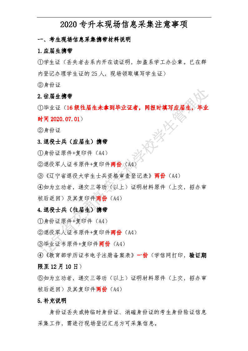 2020专升本现场信息采集注意事项